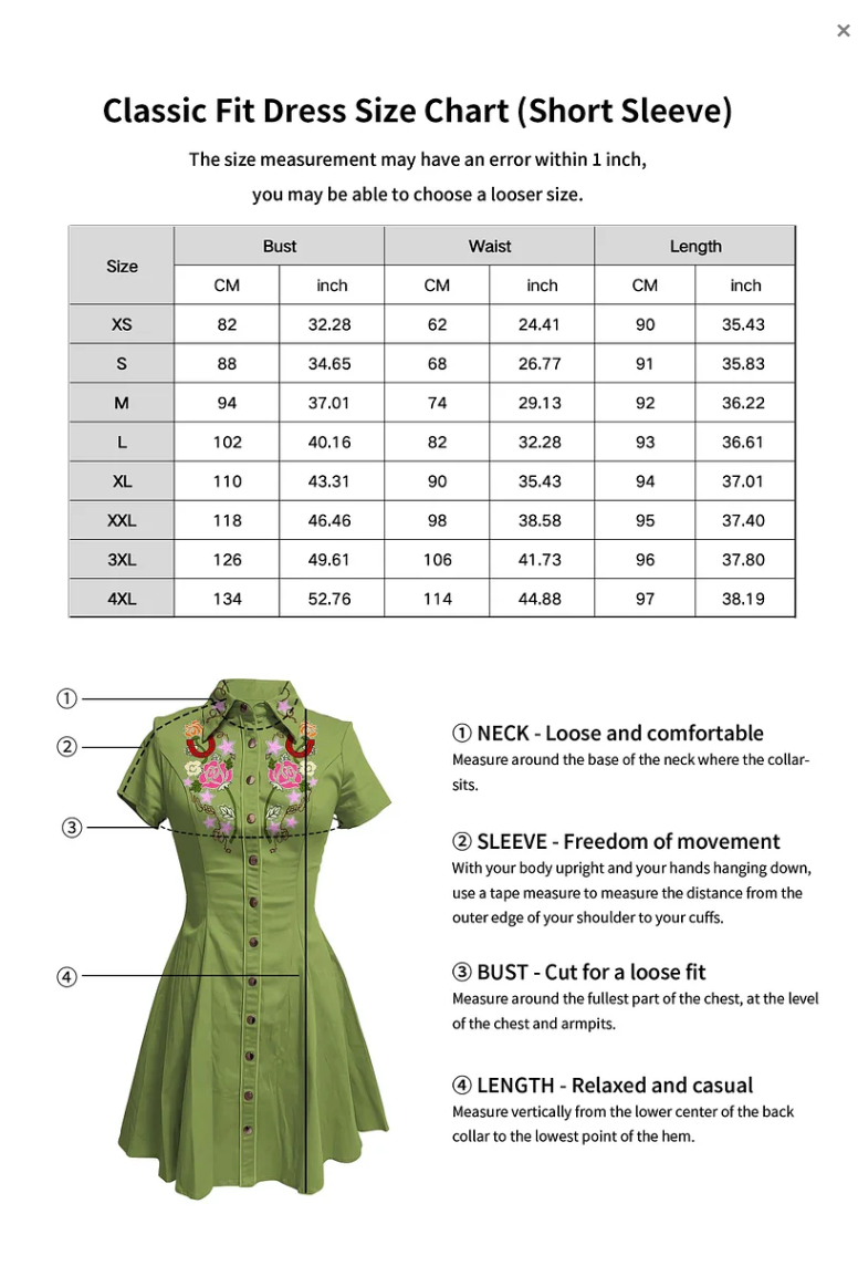 Women's Western Floral Embroidered Shirt Dress